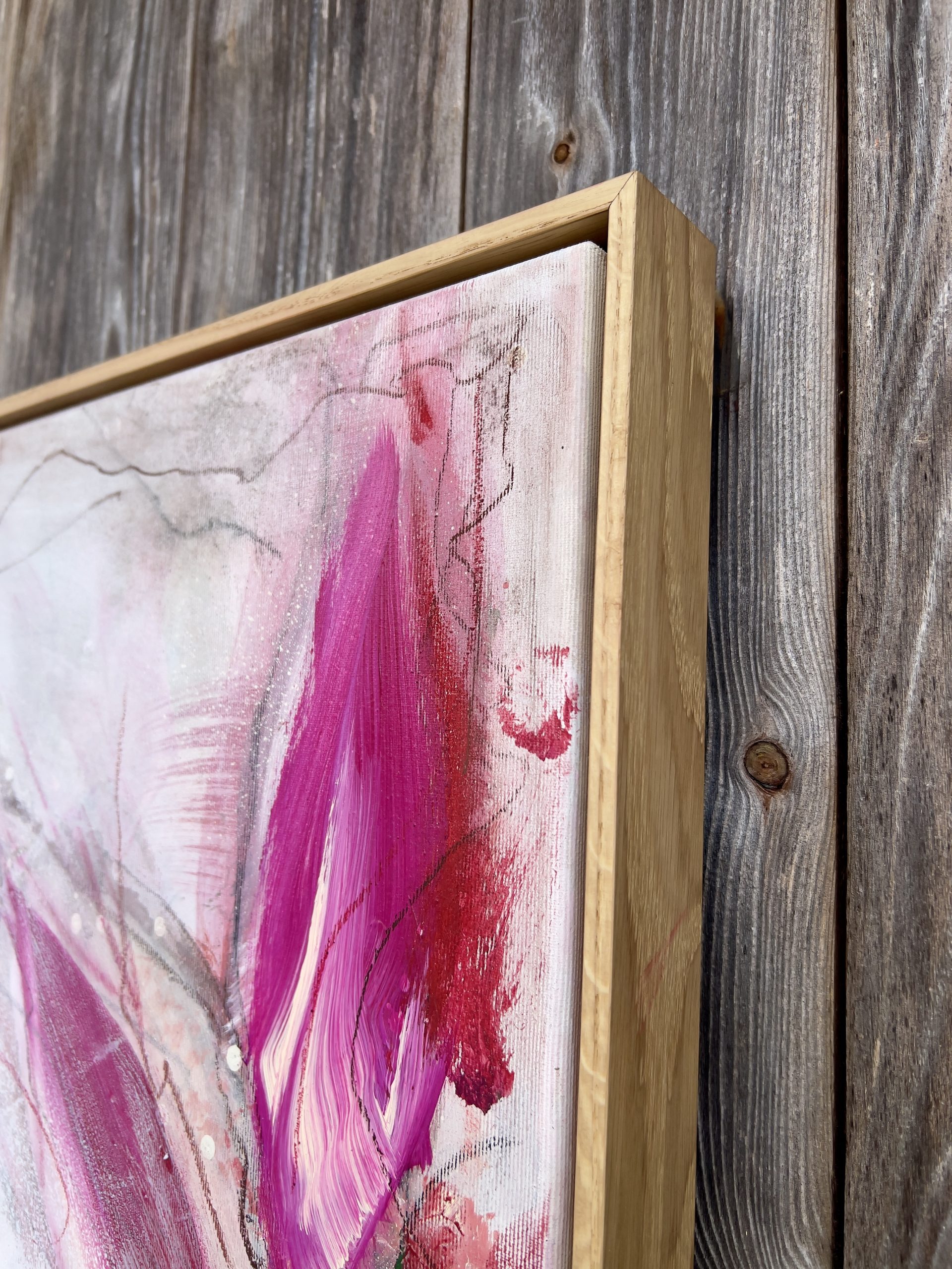 Gerahmt in edlem, unbehandeltem Buchenholz – zeitlos, puristisch und in perfekter Harmonie mit der natürlichen Ästhetik des Werkes.